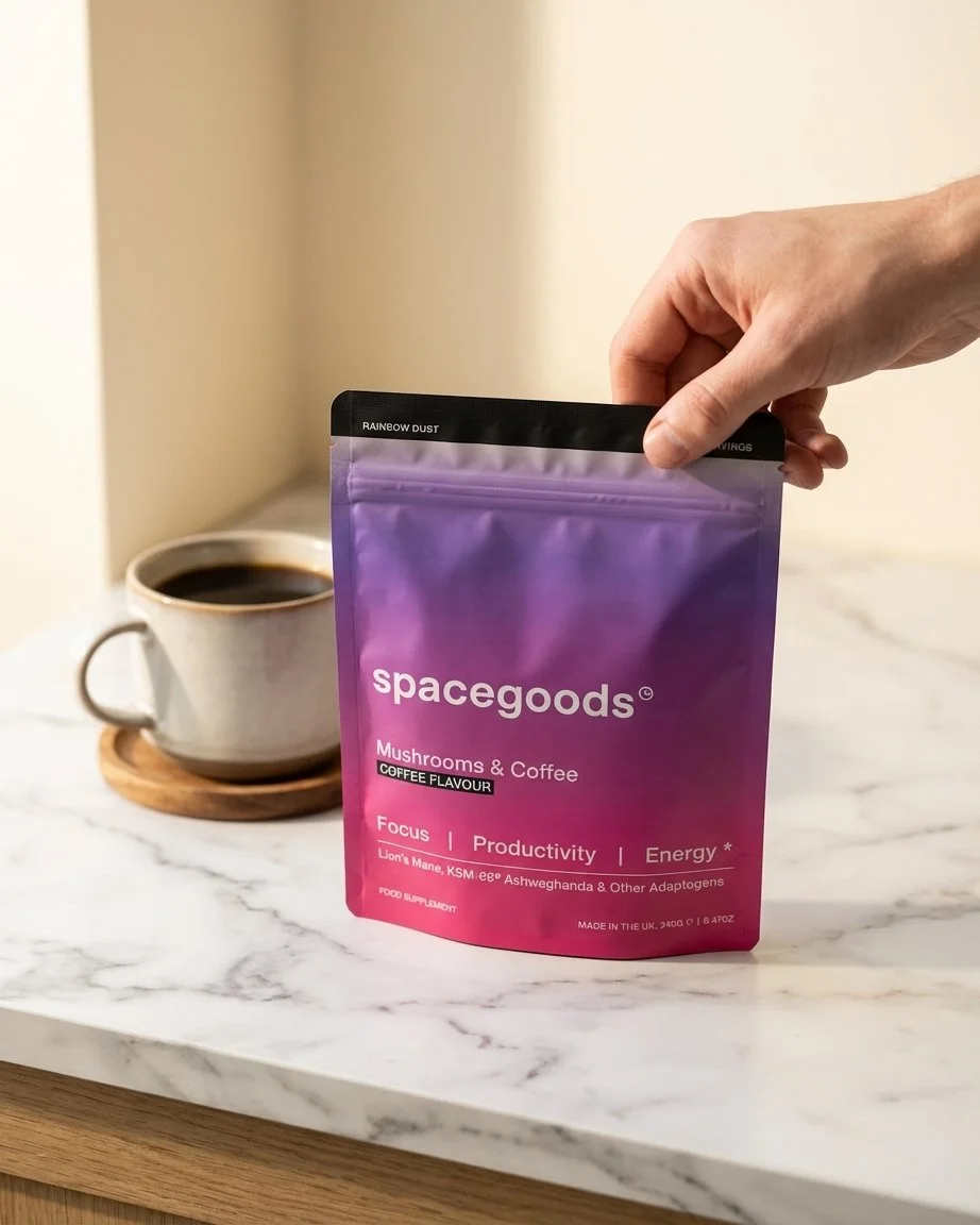 At around £1.33 per serving, Rainbow Dust sits at the premium end. You are paying for the breadth of the formula rather than just the lions mane alone. The packaging is a resealable stand-up pouch with 30 servings per bag. Spacegoods is a UK-based company operating from Dorset, and the product is manufactured in the UK.
