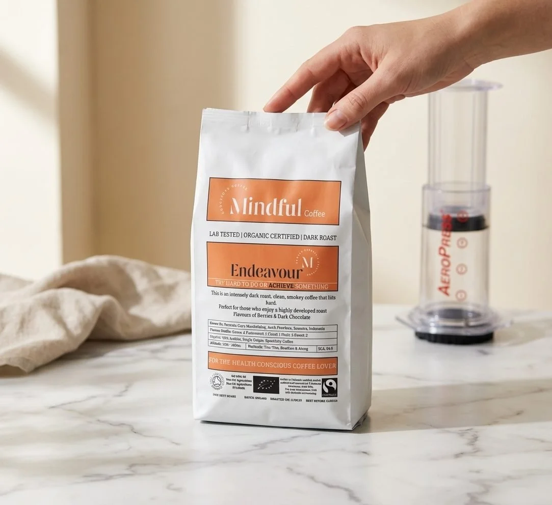 Mindful Coffee is a London-based brand with a straightforward proposition: organic, Fairtrade, and marketed as 'Lab Tested' and 'Mycotoxin Free' on its product pages. The marketing language is clear and the certifications are genuine - Organic and Fairtrade both confirmed.