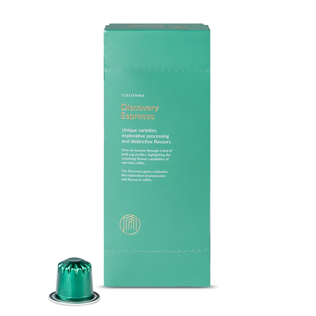 Colonna Coffee’s Discovery Espresso capsules reflect a devotion to precision and purity. Each capsule captures the delicate nuances of single-origin coffee, with bright, floral, and fruit-forward notes that unfold into a clean, aromatic finish.